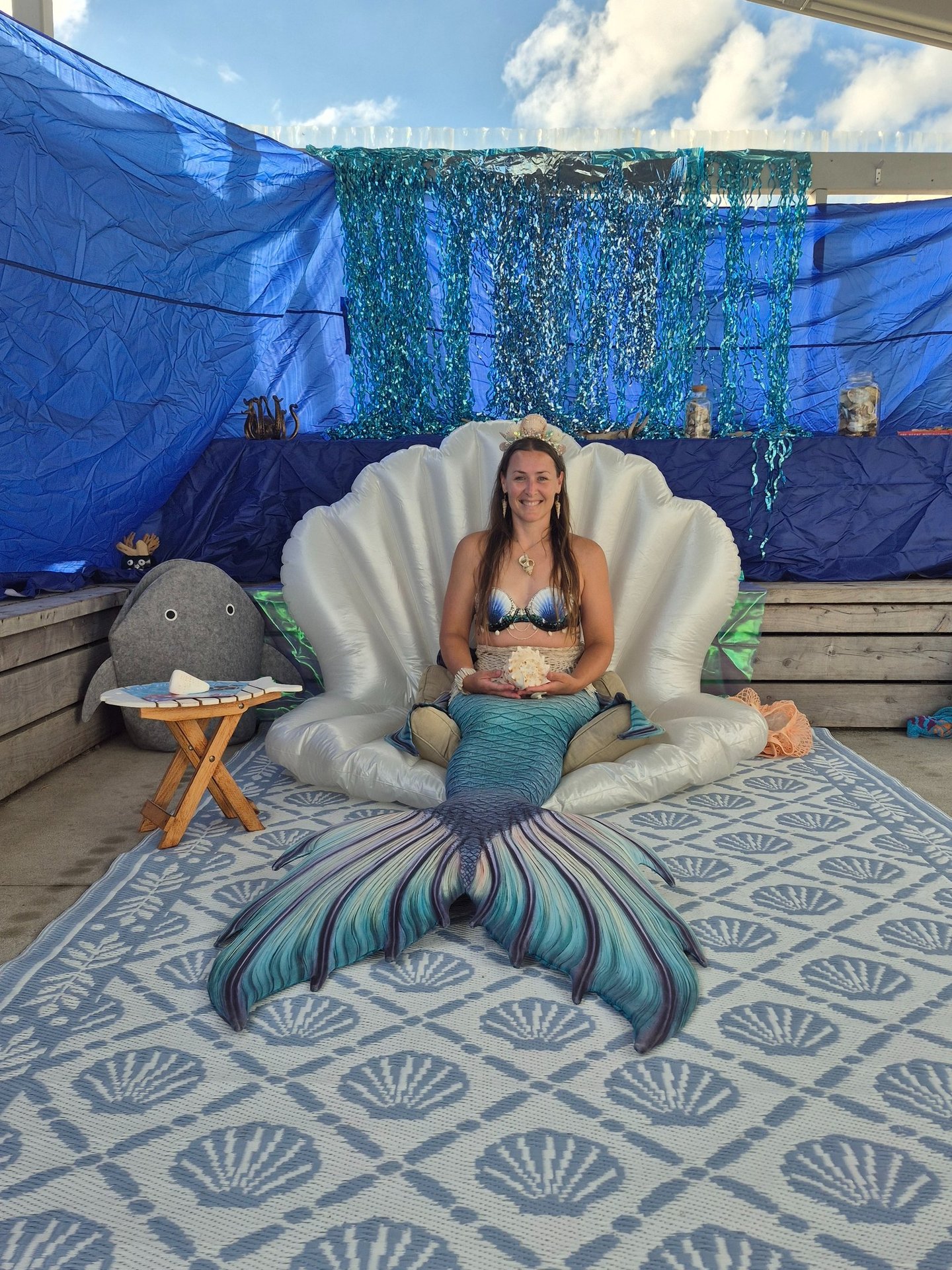 If you don't have a pool or are looking to book during the cooler months, a land-based party is a great option for a Moana Heart Mermaid appearance.